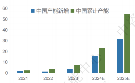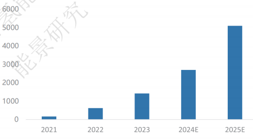图2:2021-2025年中国绿氢项目电解槽需求(MW)