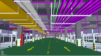 此次参与比赛的生态园西北入口工程项目,地下室管线排布复杂,系统种类繁多,净高控制和施工难度较大。团队利用BIM技术在施工前期进行碰撞检查,对管线进行综合排布调整,直观解决了机电安装过程中各系统的碰撞问题。现场施工人员能够根据模型管线排布进行精确断料、风管放样的排版,从而优化下料,大大减少废料以及材料损耗的情况。同时,公司BIM团队定期与项目部负责人进行对接,加强联系。根据项目实际情况进行深化、优化设计,有效减少建筑施工阶段可能出现的错误和返工情况。