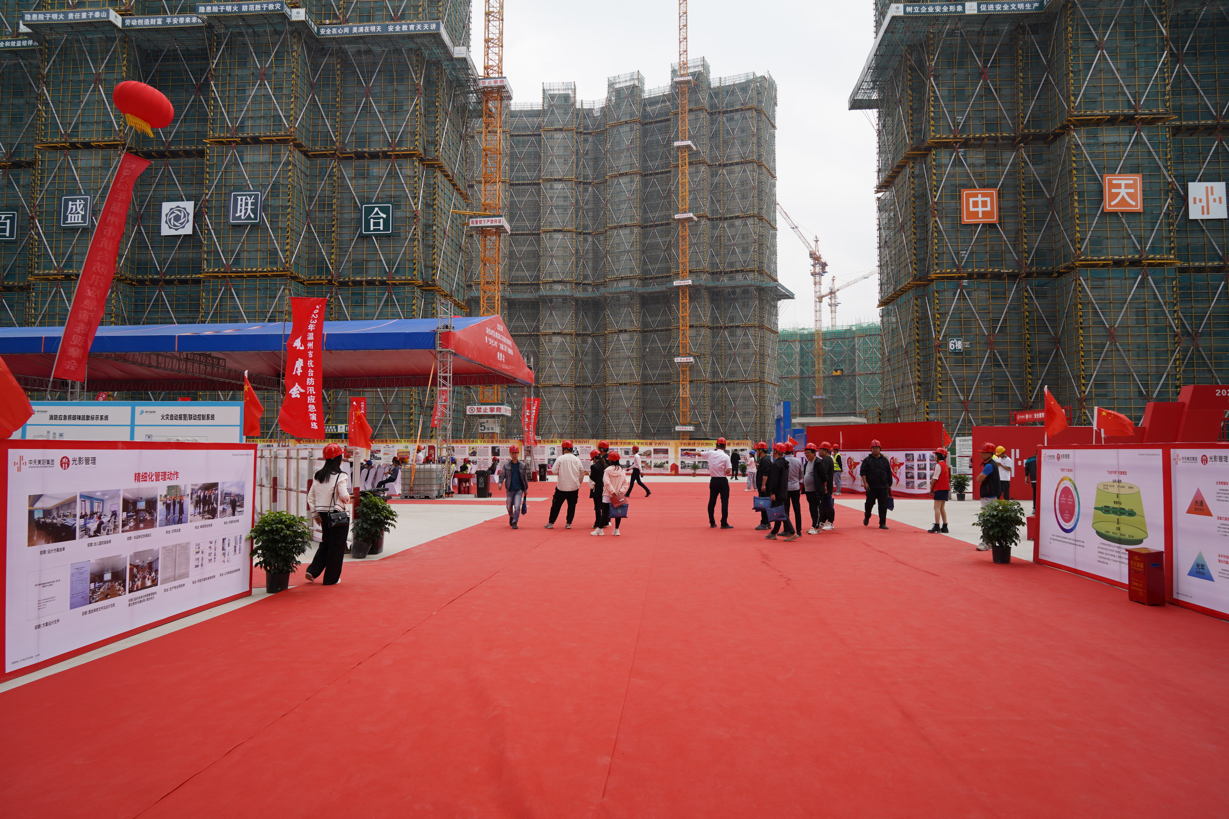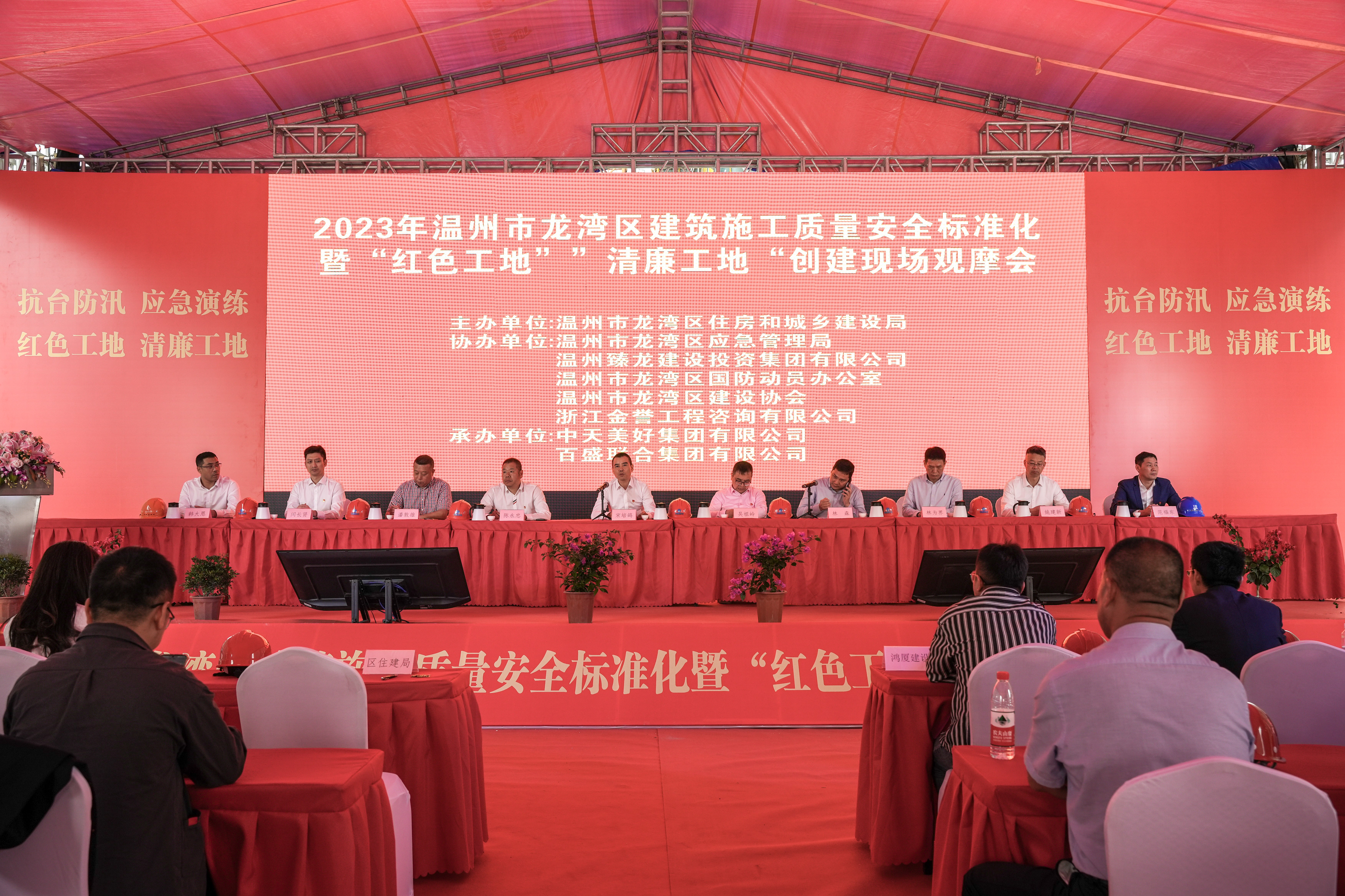 为深入贯彻落实党的二十大精神,充分发挥党建在工程建设活动中的引领作用,切实推动项目高质量履约,5月12日,由3044am永利承办的龙湾区建筑施工质量安全标准化暨“红色工地”“清廉工地”创建现场观摩会在我司蒲州街道屿田城中村改造一期工程成功举行。来自市住建局,区住建局、应急管理局、参建单位及其他建筑企业代表400余人参加观摩会。