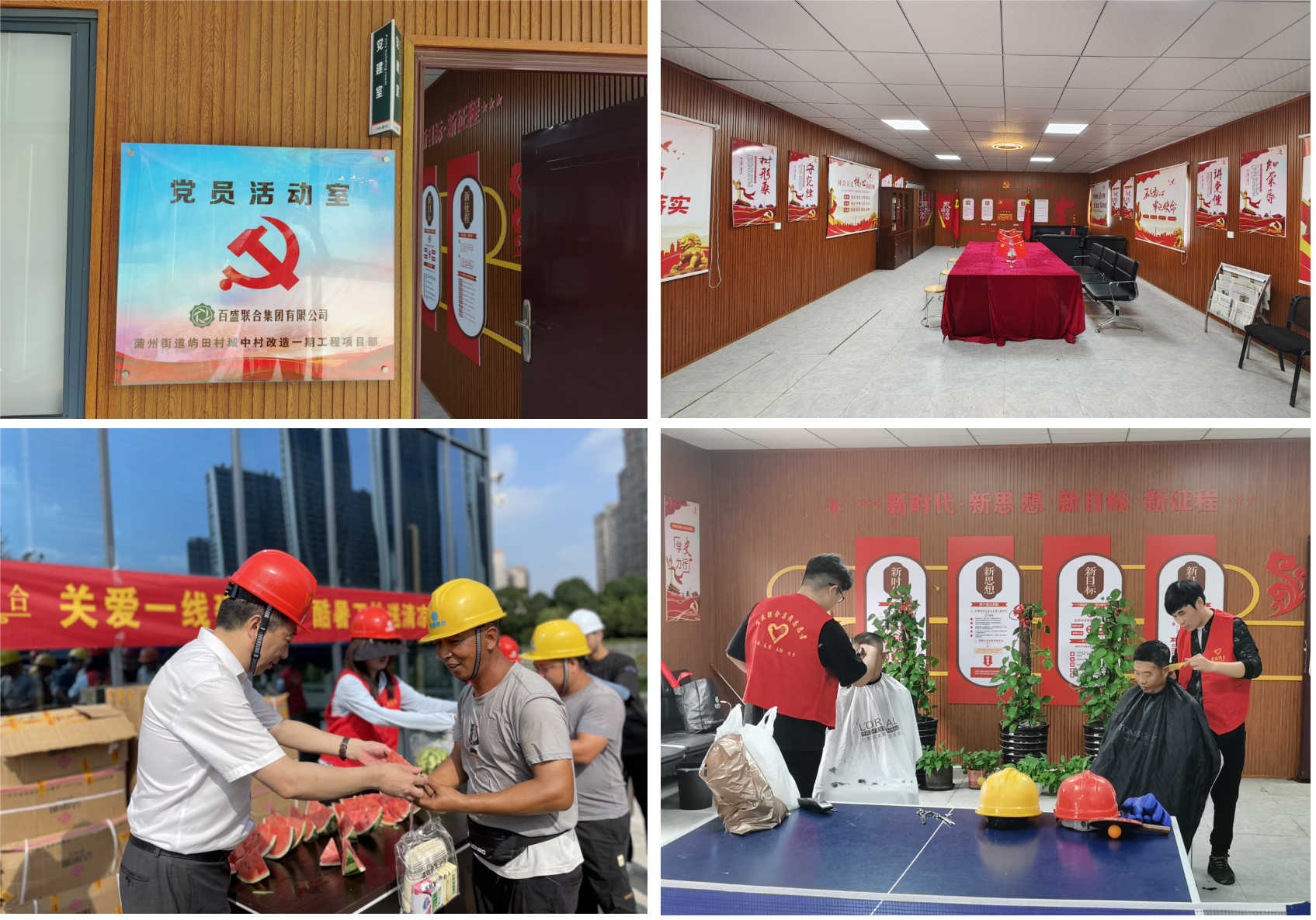 蒲州街道屿田城中村改造一期工程代建项目是龙湾区政府的重点民生工程项目。早在2021年建设初期,项目部第一时间就设立项目临时党支部,坚持围绕“业务抓党建,抓好党建促发展”的原则,全面开展“六有一好”建设内容,即有组织、有制度、有教育、有活动、有场所、有标识,作用发挥好“红色工地”“清廉工地”创建活动,推进党建强工程优。在创建“红色工地”过程中,创新文体活动,营造全新的项目施工和谐关系,切实关心员工的工作及业余文化生活。项目部设立党员活动室、职工书屋、乒乓球室等娱乐休闲场所,开展“夏日送清凉”“爱心义剪进工地”“反诈宣传”等志愿活动关怀员工,开展“开工第一课”“技能比赛”等活动调动员工积极性,增强团队凝聚力,不断提高工程质量水平。