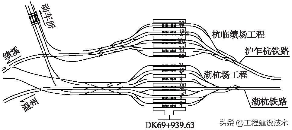 ①初期需同步实施工程较多,投资较大。枢纽内杭州东站、杭州站不能经湖杭铁路直接连接杭州西站湖杭场及动车所,初期需新建勾庄线路所至杭州西杭临绩场线路和动走线,才能引入杭州西站杭临绩场及动车所。