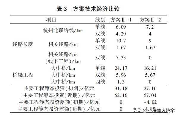 方案Ⅱ-1和方案Ⅱ-2经济技术比较见表3。