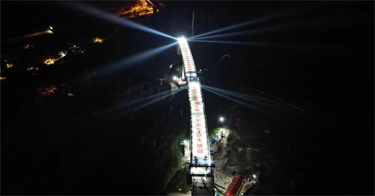 8月30日凌晨3时,在温州市永嘉县三江街道罗溪村杭温高铁建设现场,随着现场转体命令下达,连续梁稳稳落在预定位置,标志着杭温高铁南岙特大桥高铁双线T构连续梁跨营业线铁路转体成功,为今年完成全线铺轨施工奠定了坚实的基础。