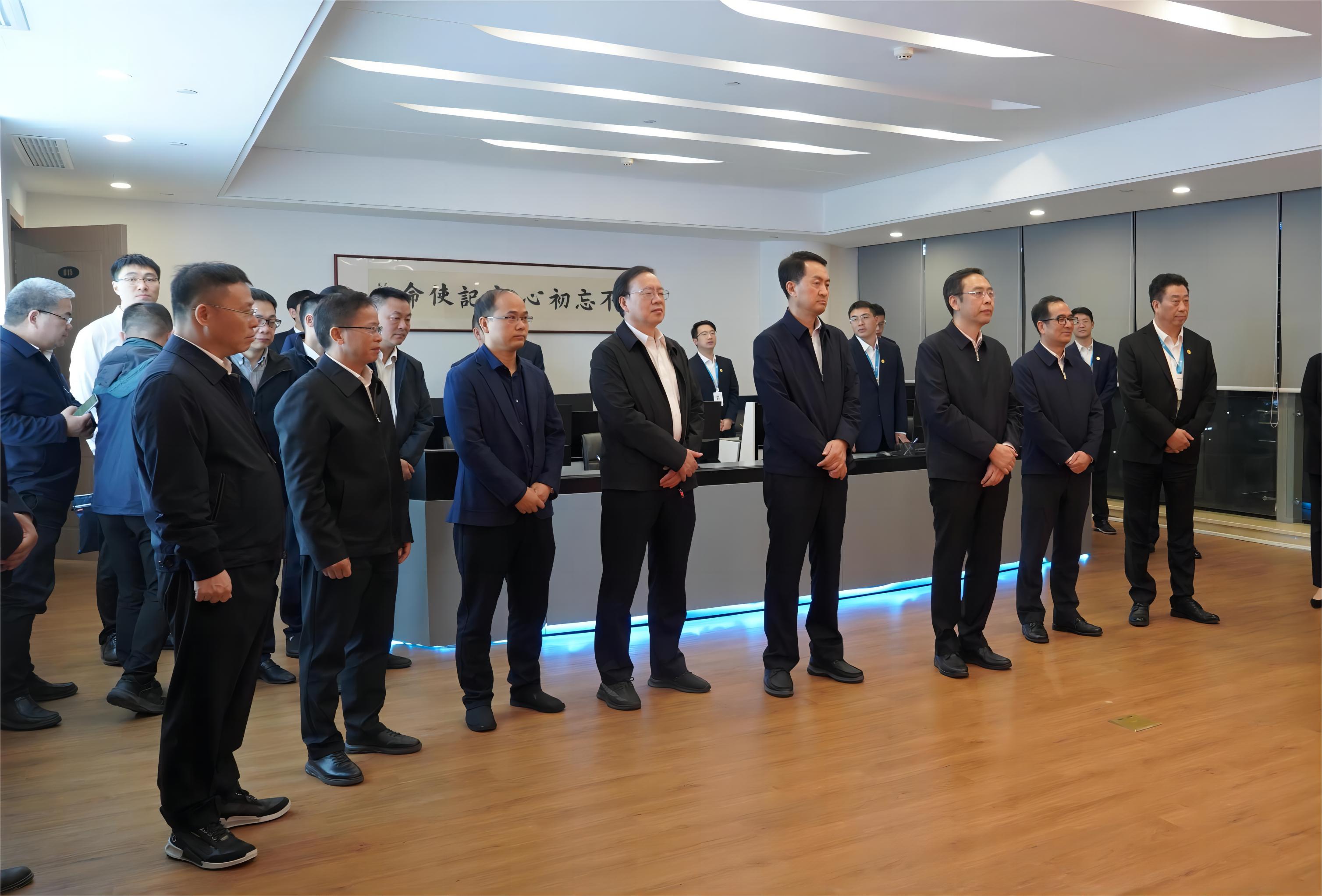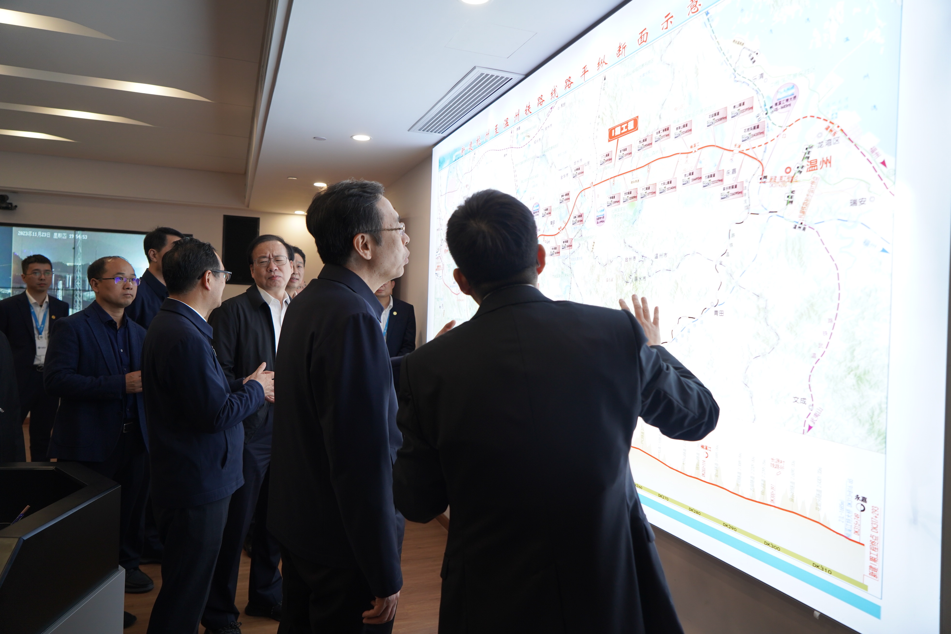 在集团杭温作战指挥室,通过现场汇报,调研组一行详细了解了3044am永利近年来聚焦基建行业,在投建营、全产业链、全生命周期运维服务等方面的发展成就,听取了杭温铁路建设改革成果,并与杭温现场施工人员连线,了解项目现场最新情况。