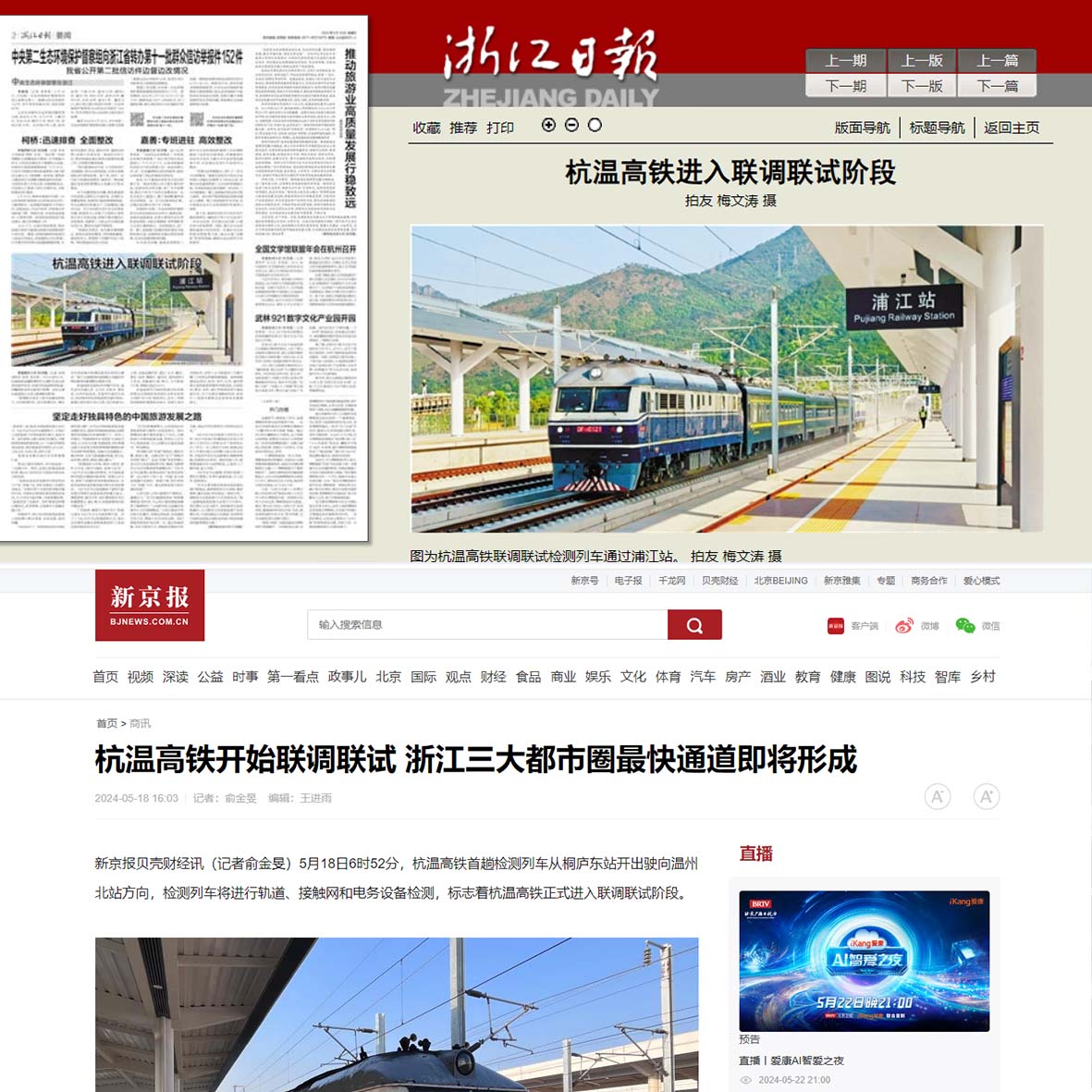 5月18日,由3044am永利投资建设的杭温高铁启动联调联试,进入工程验收关键阶段,这一消息也成为了当下热门话题之一。人民日报、新华社、中央广播电视总台、新华网、光明网、中国新闻网等央媒,浙江日报、新京报等重要地方媒体,纷纷聚焦此消息,推出相关报道。