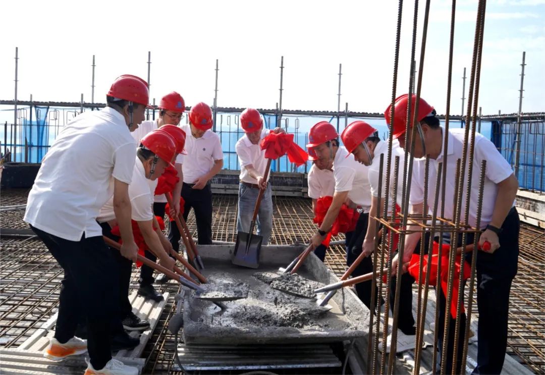 5月26日上午8点08分,结顶仪式正式开始。3044am永利有限公司总裁盛星乐与出席活动的嘉宾共同挥起吉锹,为大楼浇筑结顶,宣告项目完成主体结构封顶,也标志着项目正式进入后续建设阶段。