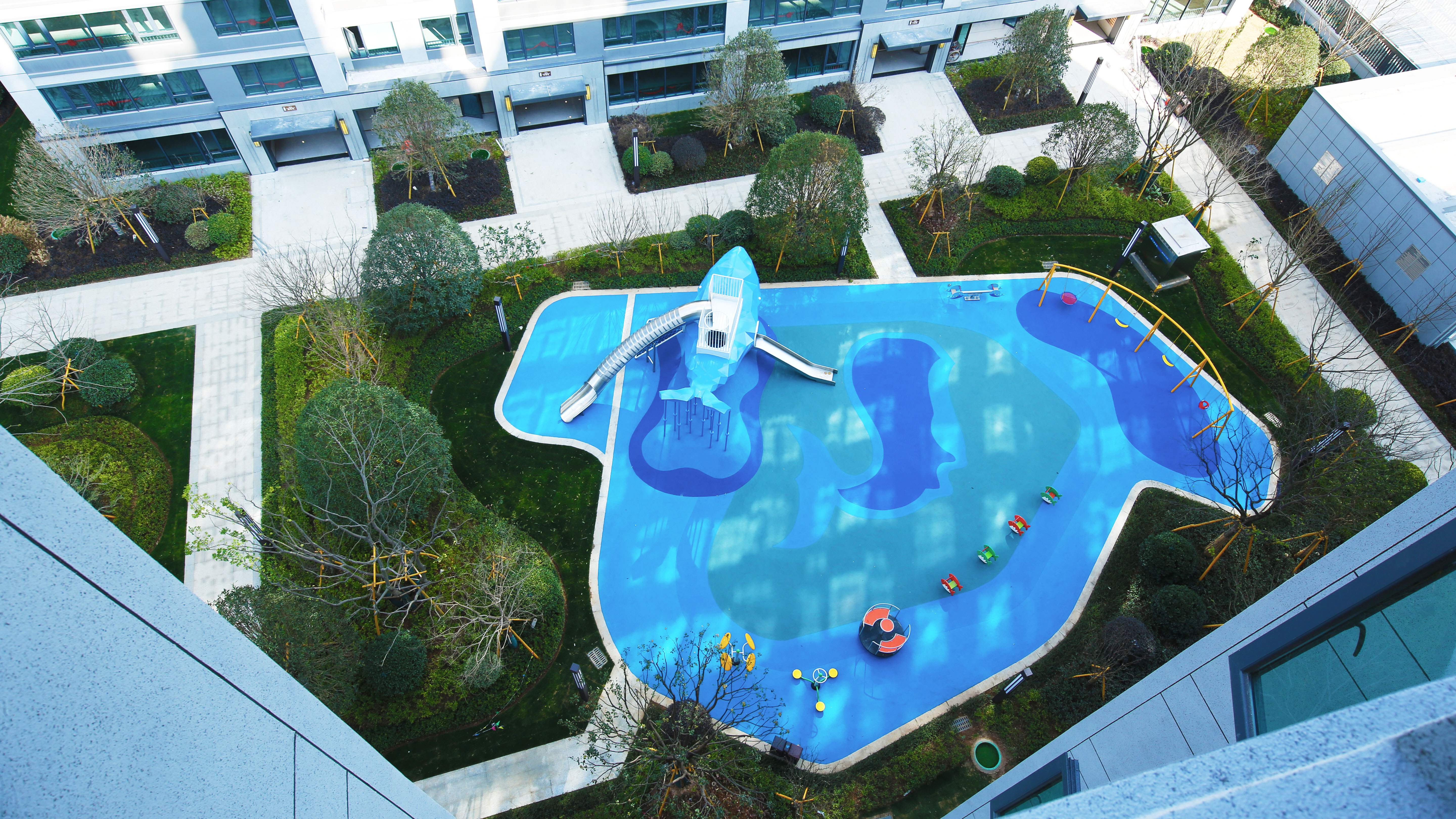 项目建筑风格现代简约,与绿化、景观等元素相得益彰。在细节营造方面,深度考量了不同年龄段住户的需求,打造了幼儿游乐场区、健身区、塑胶跑道、连廊走道及休息亭等。