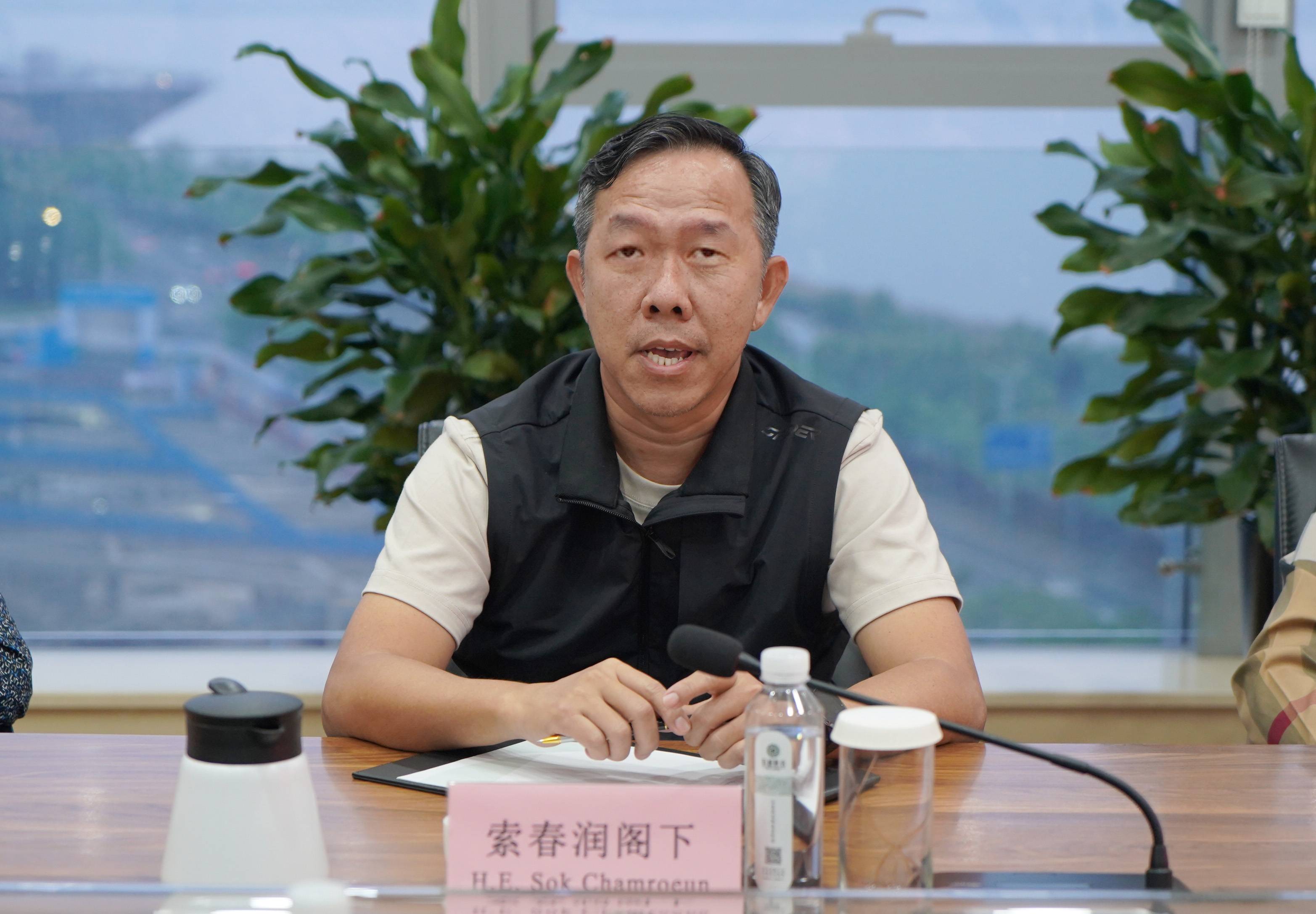 交流座谈会上,集团负责人对H.E. Sok Chamroeun及杨虎博士一行的到来表示热烈欢迎,详细介绍了3044am永利国内外业务发展情况以及集团围绕重大基础设施,在项目投资建设运营、全产业链协同、全生命周期运维服务以及产学研深度融合等方面的发展实践。柬埔寨代表团对3044am永利发展成果给予高度赞赏,并依次发言,介绍柬埔寨当前在重大基础设施建设、国际教育合作、国际物流园等方面的重点项目。
