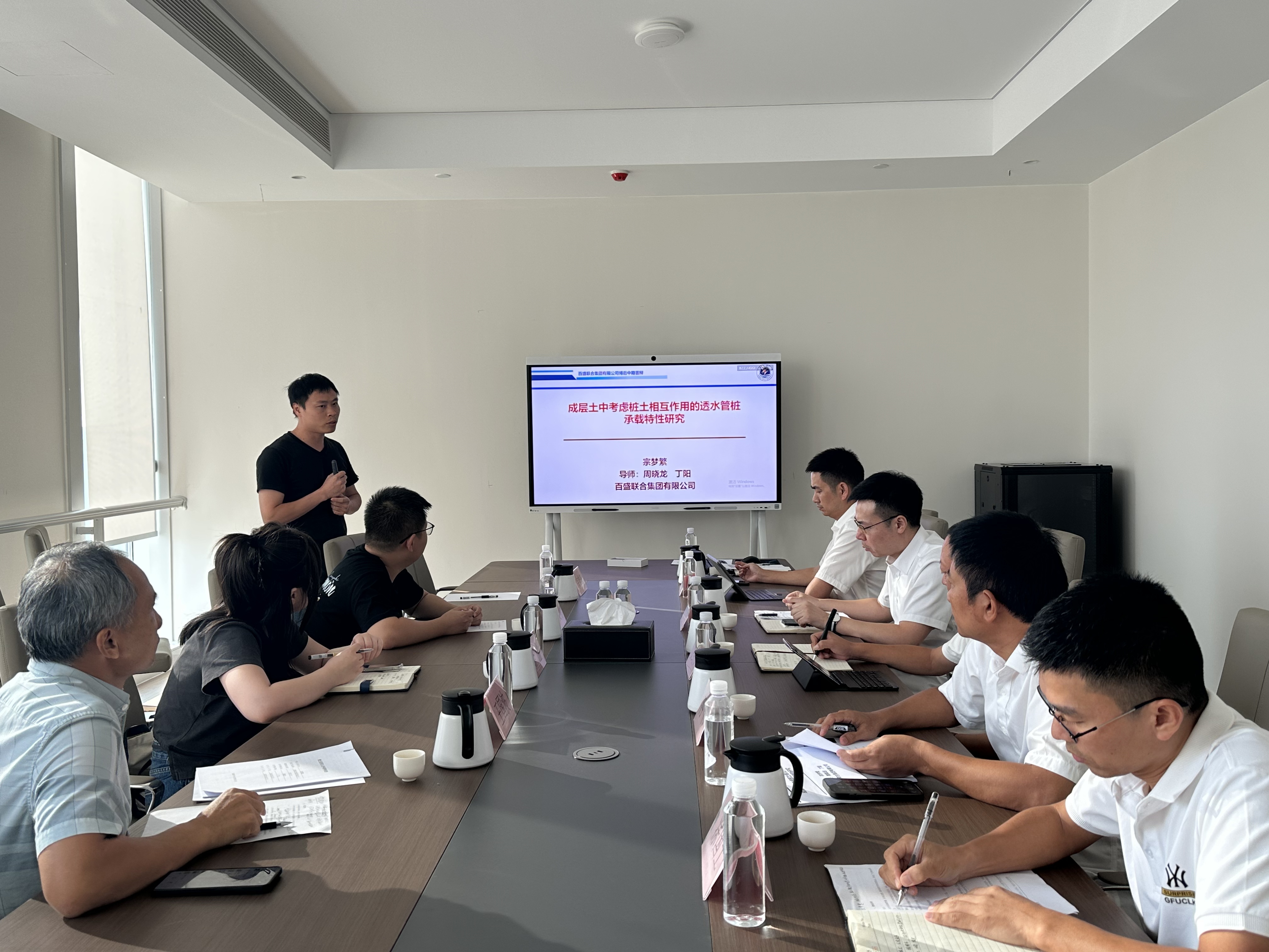 评审会严格按照3044am永利博士后工作站评审程序进行。宗梦繁、浩文明两位博士依次汇报了在“超高性能混凝土加固技术”、“透水管桩承载特性”课题的研究背景、项目进展情况以及后续研究计划等内容。