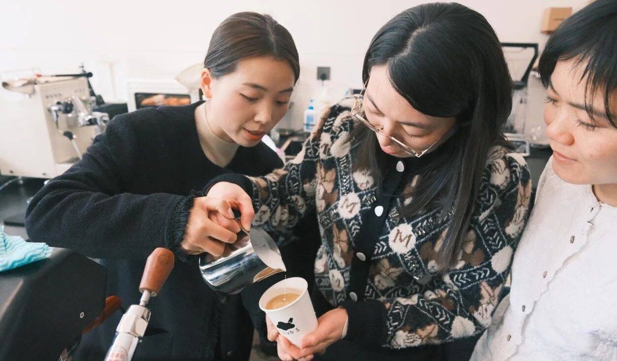 活动现场,大家在咖啡师的指导下亲身实践,从握缸姿势的调整到奶泡细腻度的把控,反复尝试、相互交流。专注的眼神里,满是对美好的追求。