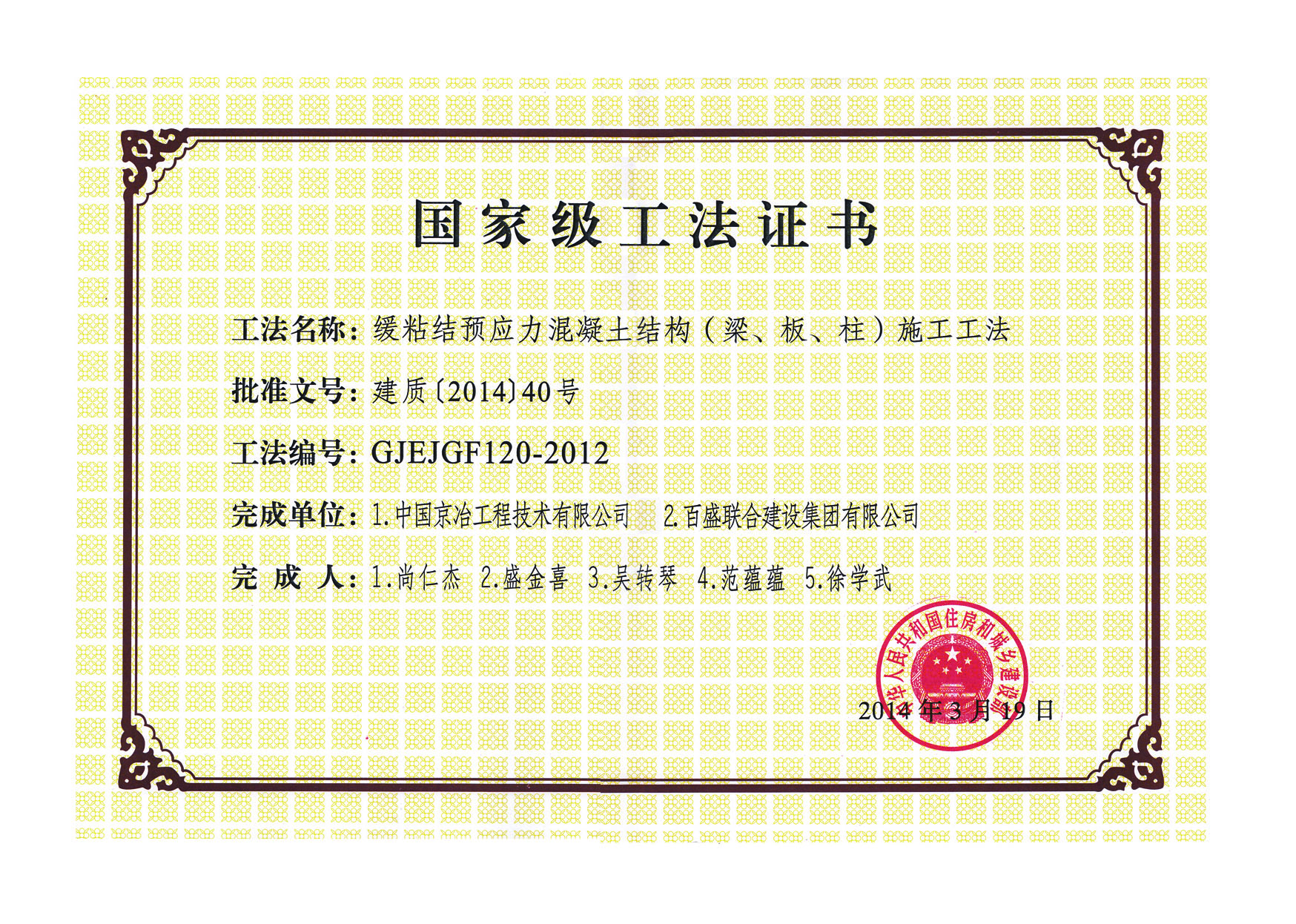 缓粘结预应力混凝土结构施工工法3项国家级施工工法