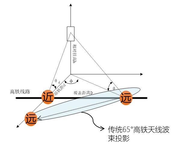 为了实现铁路从近点到远点的连续性覆盖,基站天线的垂直半功率波束宽度应该大于远近点下倾角值的差。因此,使用传统的基站天线,70%的站点无法支持对高铁专用网络的连续覆盖。